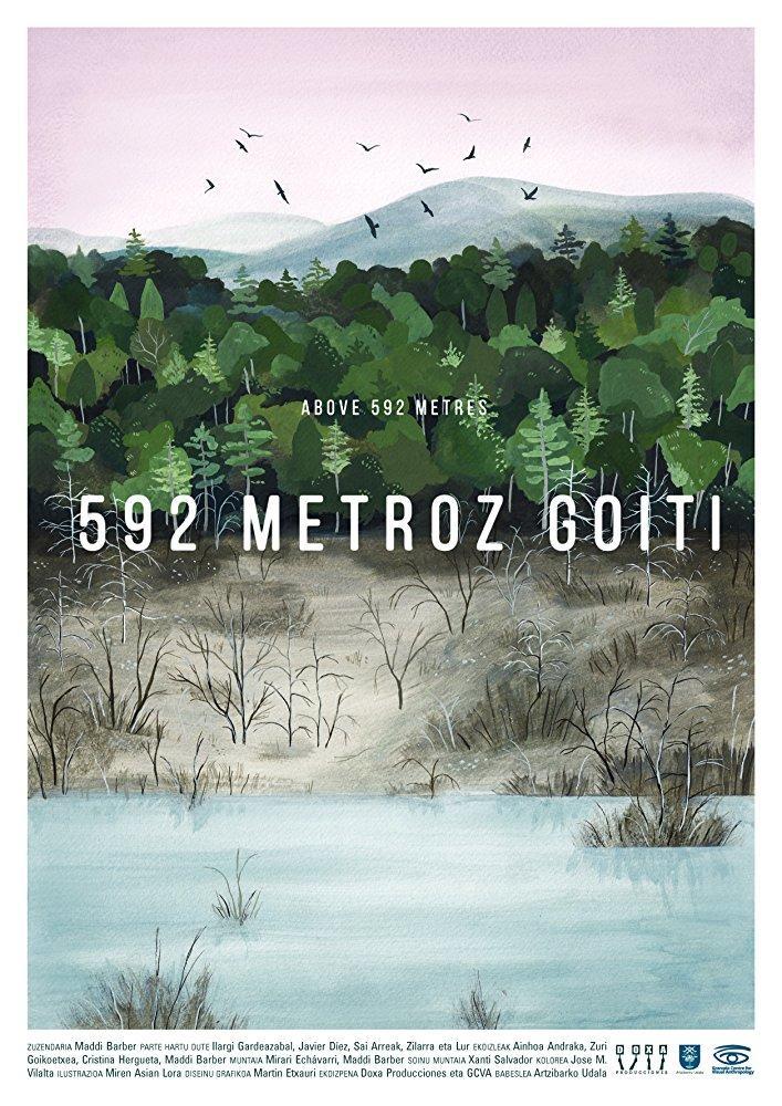 592 metros es un simple dato, una cota en un mapa topográfico, pero para los habitantes de los valles navarros de Arce y Lónguida es el nuevo cero sobre el que tuvieron que volver a empezar, tras la construcción de un pantano que sumergió la comarca. Maddi Barber, originaria de la zona, vuelve con su cámara para intentar descubrir la vida después la vida en un paisaje alterado y con una dolorosa cicatriz en la memoria llena de recuerdos que emergen como las casas, árboles y caminos cuando el nivel del agua desciende. A través de dos puntos de vista –una ganadera y un guardia forestal con un diferente vínculo con el espacio y los animales– este trabajo fin de Master de Antropología Visual reflexiona sobre la relación del hombre y su entorno, en este caso tan bello como inquietante, para hacer emerger las consecuencias y el impacto de la intervención humana.