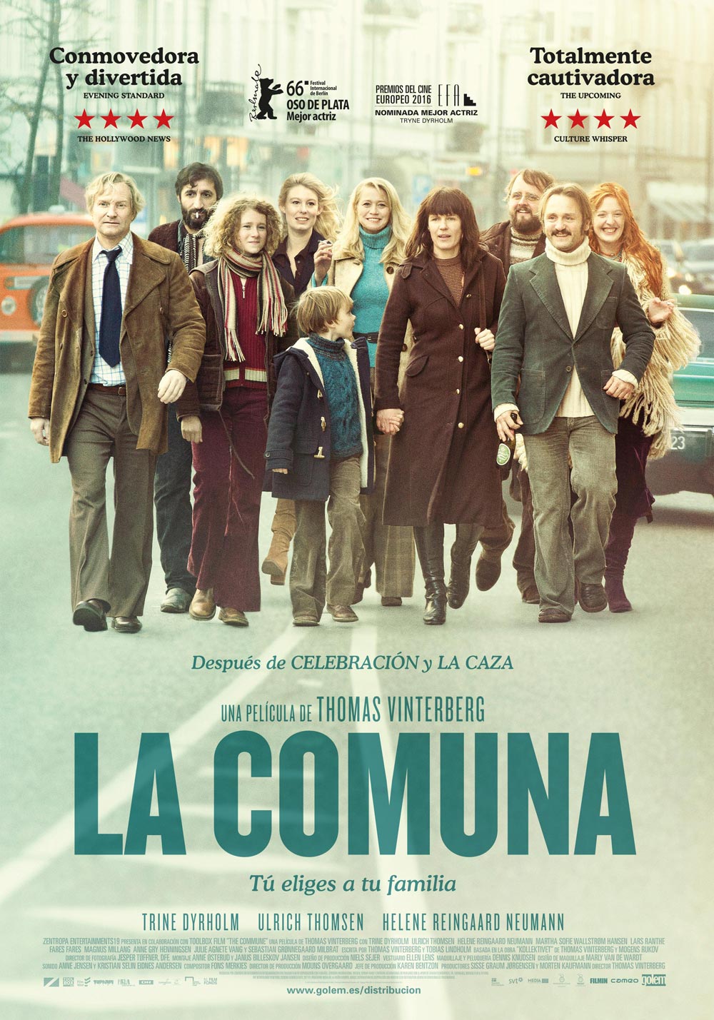 “Quiero oir a otras personas” le dice Anna (Trine Dyrholm) a su marido Erik (Ulrich Thomsen), para persuadirle de compartir su recién heredada casa y, de paso, dinamizar una vida que se adivina estancada en la rutina de la edad adulta. Este es el principio de La comuna (Kollektivet, 2016), el regreso de Thomas Vinterberg con los mismos protagonistas de Celebración a los años 70, época de experimentación y amor libre, y a una nueva disección de una comunidad. Este microcosmos humano, observado con humor y con las reglas aún por escribir, pronto se adivina conflictivo en su evolución y metáfora del orden social: un universo donde a pesar de la igualdad de todos sus miembros se reconoce la figura del líder, el guardián del orden o incluso el refugiado y en el que, aunque las decisiones se toman de forma mancomunada, quien ostenta el poder económico intenta imponerse a las decisiones democráticas.